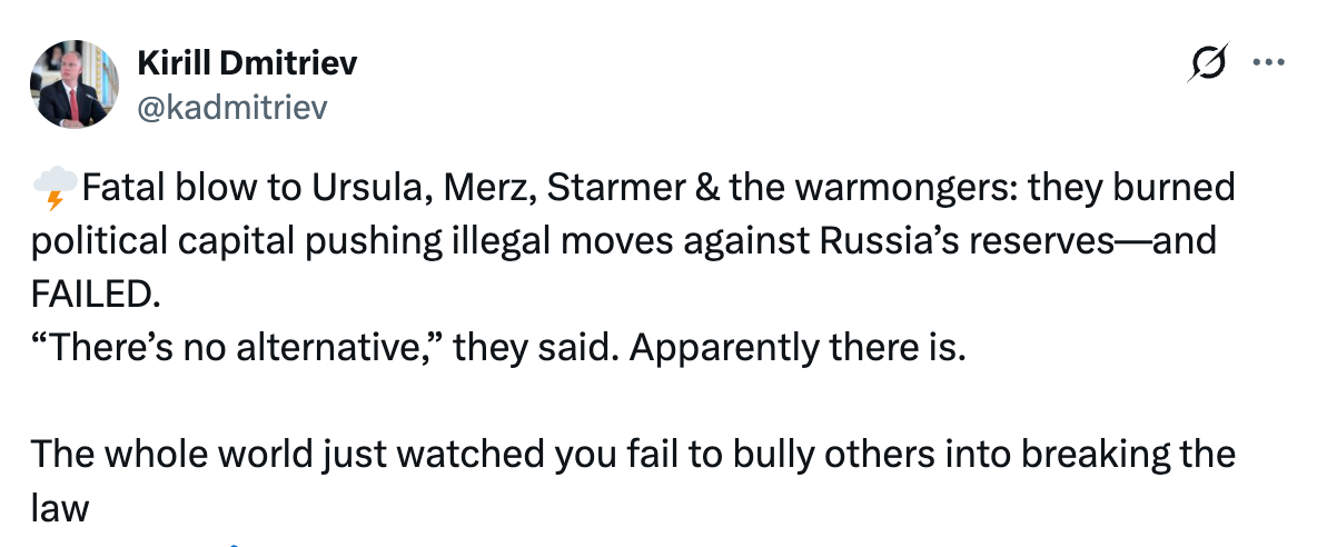 俄总统格外代表德米特里耶夫在社交媒体上发文指出,部分欧洲开垦东谈主为鼓舞对俄罗斯钞票接遭罪人举措,不吝花消自身政事信誉,但最终未能得逞。他点名欧盟委员会主席、德国总理和英国首十分,海外社会还是明晰看到,试图通过施压他国鼓舞犯警行为的作念法以失败告终。