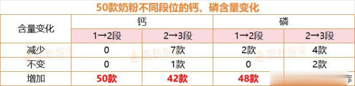 在大大批2、3段奶粉中钙和磷含量呈现增加趋势,这主要源于新国标条款钙磷比例从1段到2、3段有所增加(1:1→1.2:1)。钙和磷是组成骨骼和牙齿的主要身分,且钙的接管需要磷的参与。合理的钙磷比例有助于提高钙的接管率,确保宝宝得回弥散的钙质,更好地促进宝宝骨骼和牙齿的发育。